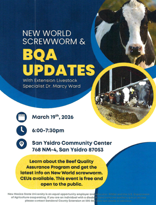 Learn about the Beef Quality Assurance Program and get the latest info on New World screwworm. CEUs available. This event is free and open to the public.